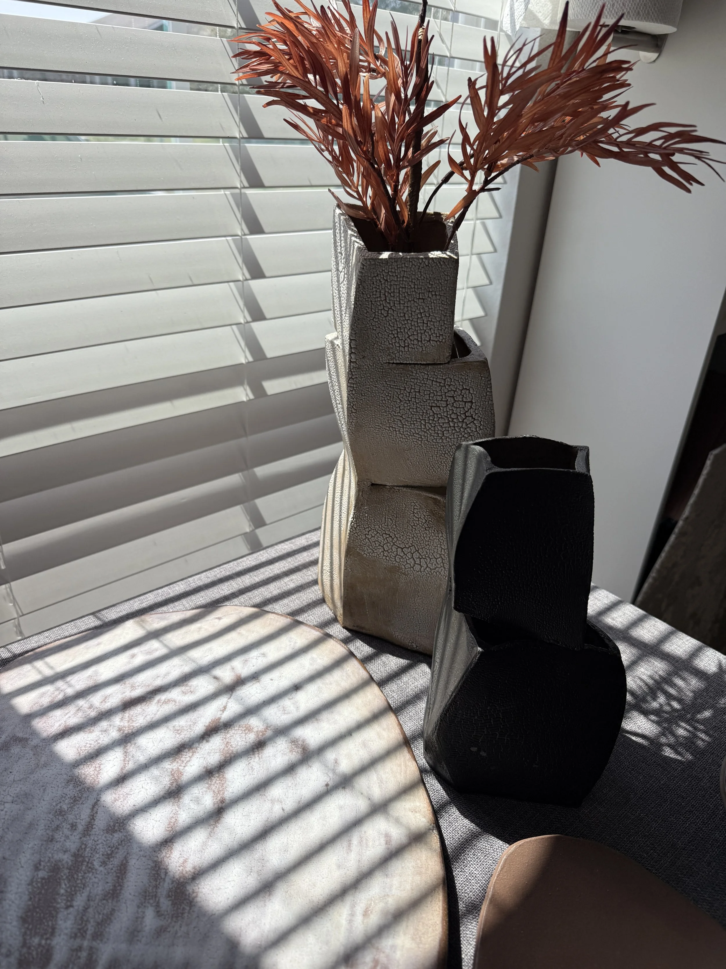 Together, these works create a language of form that is steady yet alive, grounded yet responsive. They invite the viewer into a relationship of quiet attention — objects that hold space as much as they occupy it.